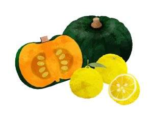 (ゆず湯)に入って(かぼちゃ)を食べて厄除けをしましょう。